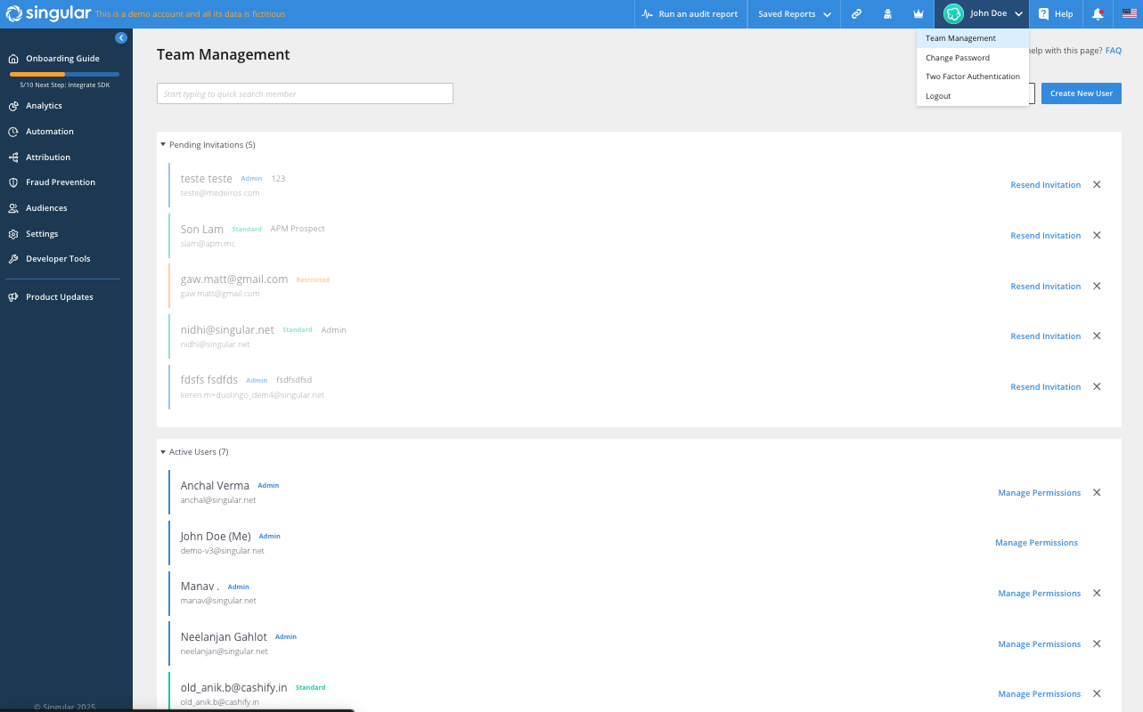 팀원들에게 Singular 내 계정 접근을 위한 초대 방법과 특정 데이터와 도구들에 대한 접근 권한을 제한하기 위한 방법에 대해 배워보세요.